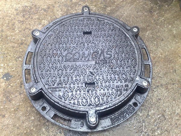 É uma peça utilizada para fechar e proteger acessos a redes subterrâneas.